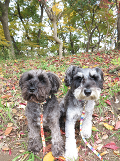 2わん連れて、カメラ持って、片手にみかんを大量に持って!