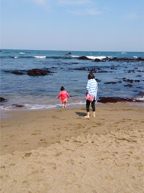 そして長女はお陰様で⁉服のまま波打ち際に座り込み、キャハハ♪キャハハ♪と楽しんでおりました。