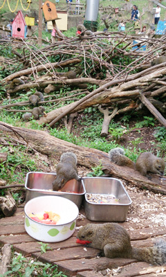 本来なら園内を自由に行きかうリスに餌をあげることが出来るのですが、人が多い為、餌をあげる人も多く、既にお腹いっぱいのリス達はほとんど食べてくれず^^;