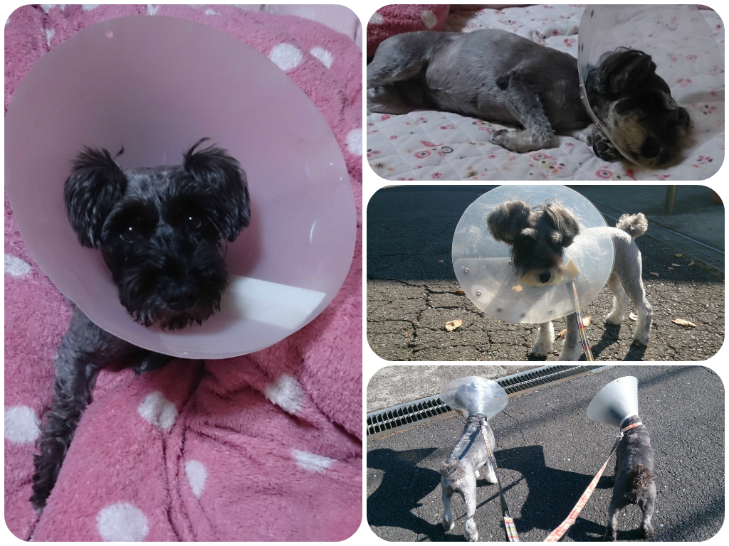 約10日間ほどエリザベスをしているそうですが、散歩もかなり目立ちますし、恥ずかしいです^^;