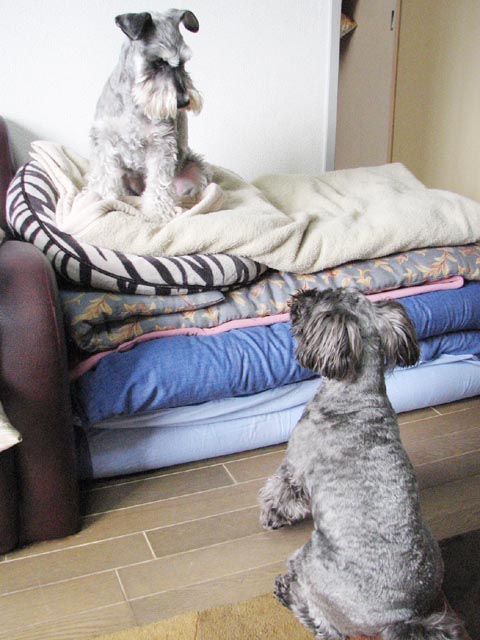 我が家ではワンコの遊び場の一つとして時折こうして布団を積んであげています。